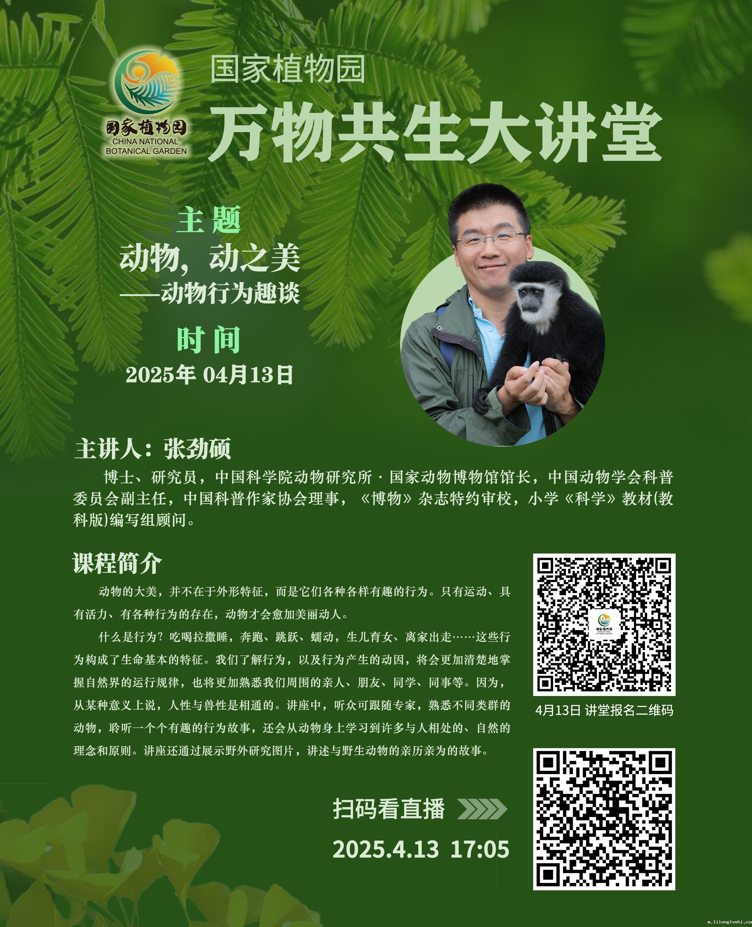 活动招募丨星空娱乐彩票网络平台《万物共生大讲堂》2025年第四讲张劲硕《动物,动之美——动物行为趣谈》